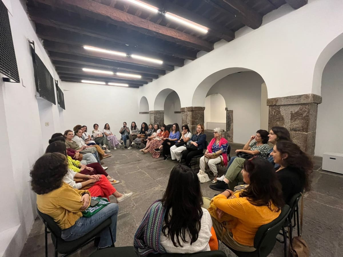 Aquila nos falou sobre a contemplação, o tempo e a generosidade da pintura, a negociação interna no processo de criação, o afeto, os desdobramentos, as razões para pintar, a necessidade da surpresa, a imersão e o distanciamento, a continuidade e a criação de uma linguagem, o jogo e os limites para a liberdade criativa, percepção, sensibilidade, permissão para criar...entre tantos outros assuntos. Para além da imensa riqueza e grande contribuição para nosso campo de atuação, saímos todas, individualmente e enquanto grupo, afetadas, mobilizadas, nutridas pelo encontro.